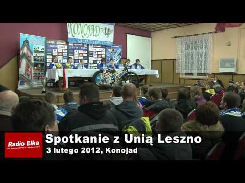 W Konojadzie, niedużej wiosce k. Kościana spotkanie z żużlowcami Unii Leszno zorganizowano już po raz piąty. W piątkowy wieczór pojawiła się prawie cała ekipa Byków z trenerem Romanem Jankowskim na czele, bardzo młoda ekipa. – Mamy szczęście, że tylu utalentowanych chłopaków przychodzi do szkółki żużlowej i później z nich wyrastają wspaniali zawodnicy. Inne ośrodki mają problem, w takim Rzeszowie w szkółce są tylko motocykle i nie ma kto na nich jeździć. Nasza szkółka jest zawsze pełna, jest z kogo wybierać. Widzicie państwo, najlepsi siedzą obok mnie - mówi trener Jankowski.